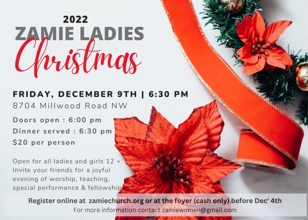 Please join us for a joyful evening of dinner, worship, teaching, special performance and fellowship. This event is open to all ladies and girls 12+. Invite your friends and family and join us as we celebrate the start of the Christmas season together.