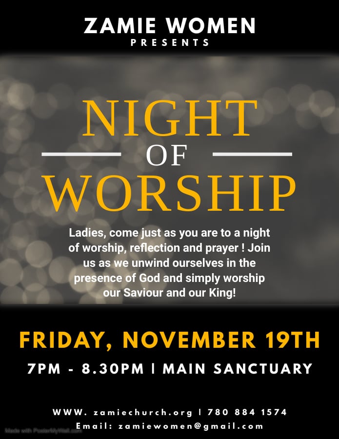 We welcome all the ladies for a night of worship, reflection and prayer! Come just as you are. Join us as we unwind ourselves in the presence of God and bring a heart of worship to our King that is due to His name.